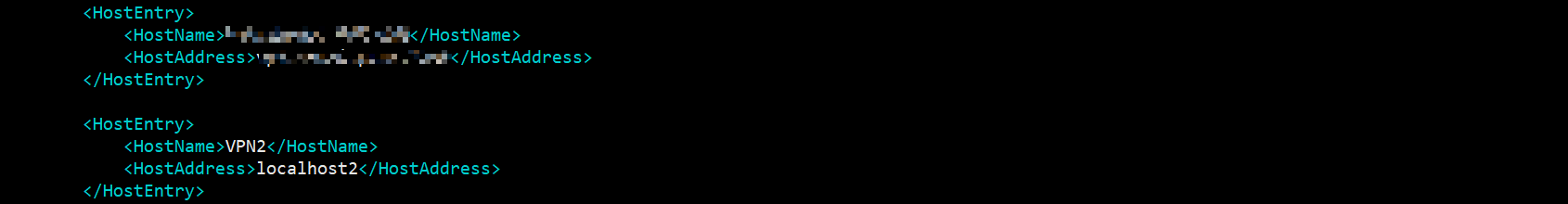 并将其中第二个HostName是VPN2的HostEntry删除掉