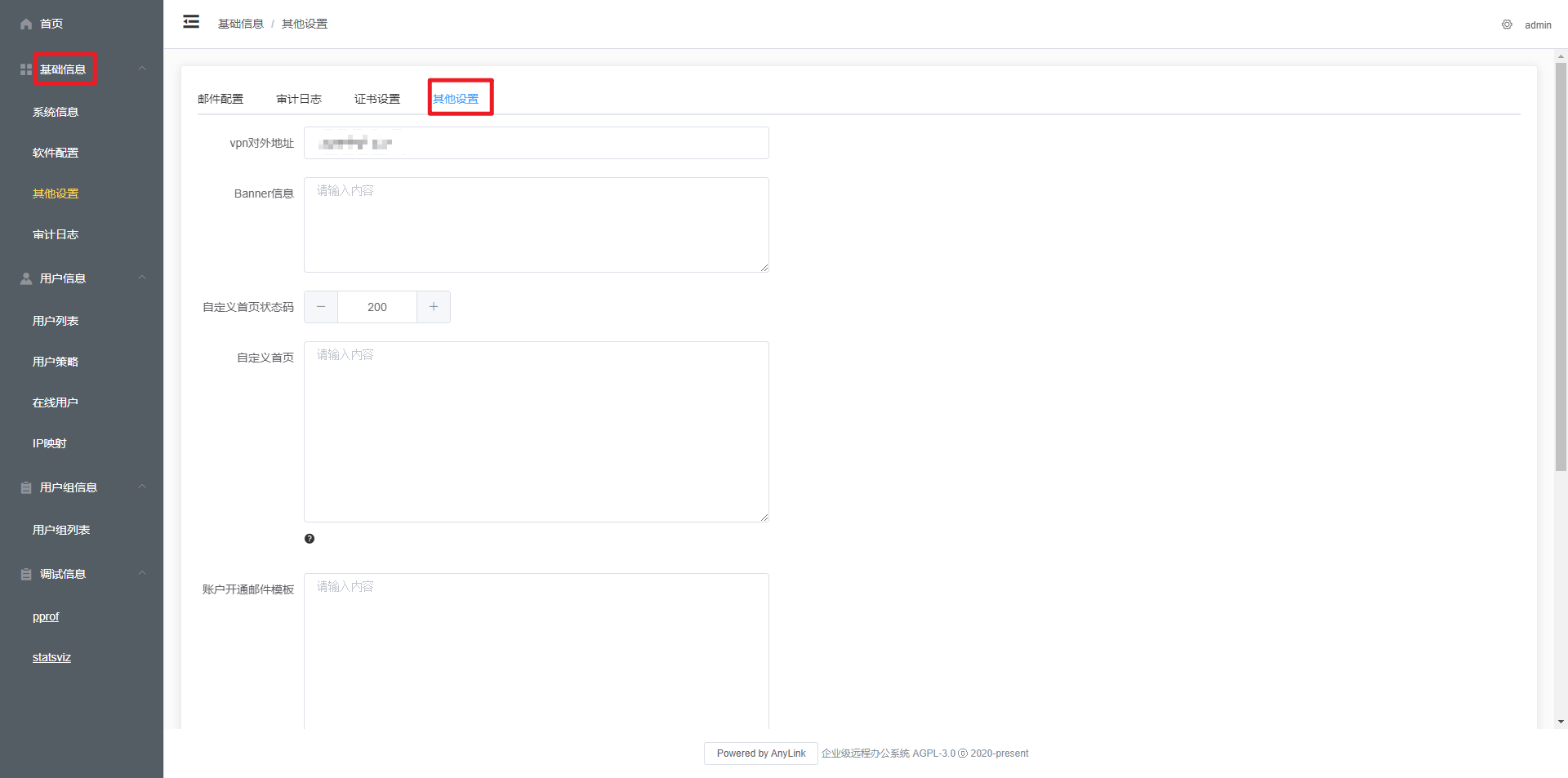 内网访问AnyLink,浏览器地址栏输入https://IP地址:后台管理端口,使用admin和密码登录