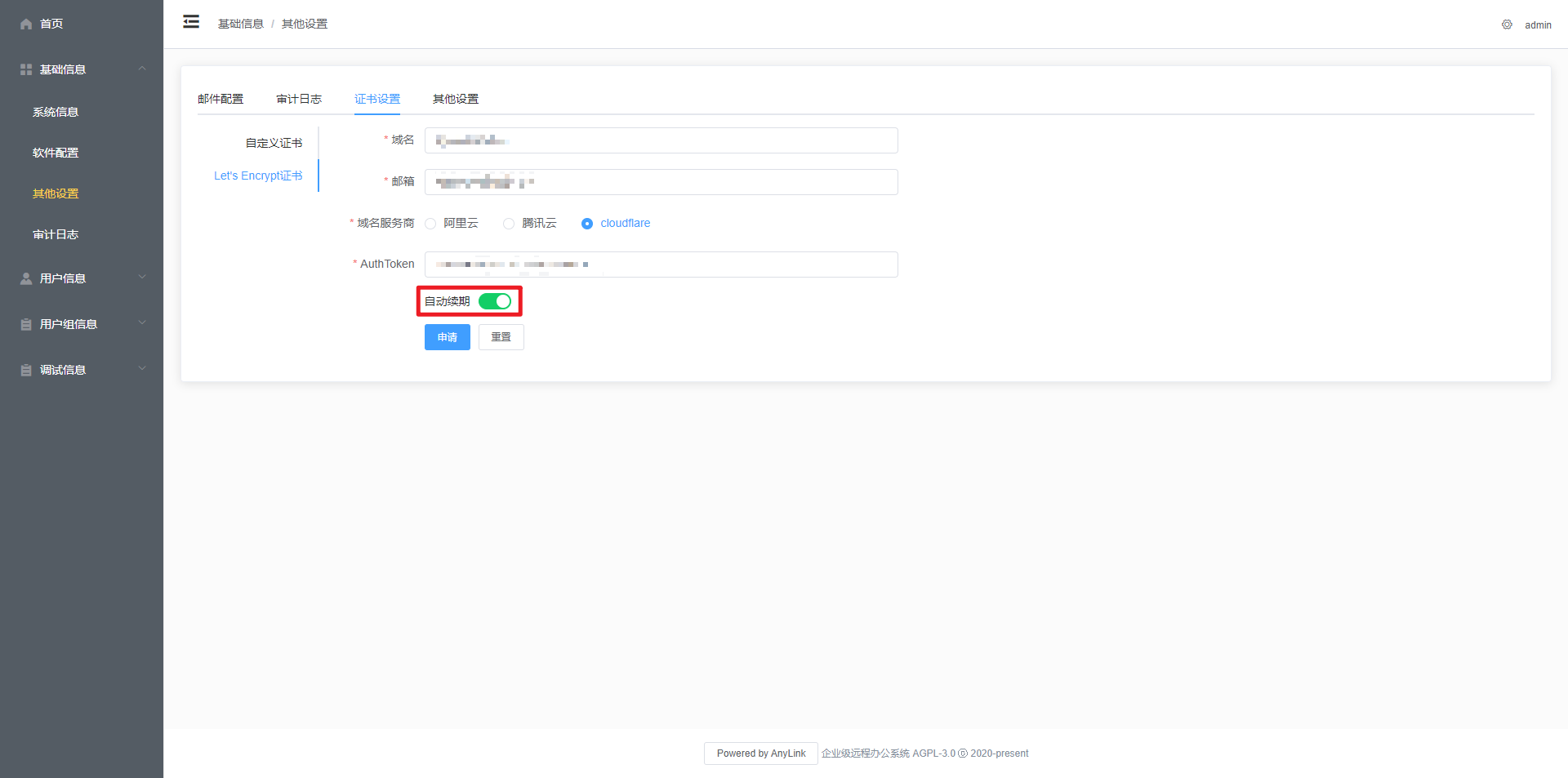 [3]自动申请并续签证书功能,可以在其他设置->证书设置中配置