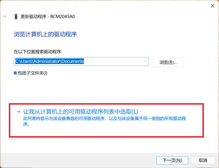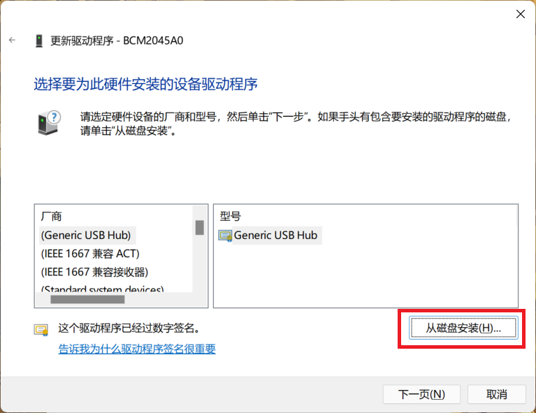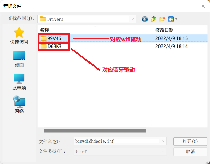 wifi的驱动安装同上,不过在这个位置时候选择第二个文件夹(无视下面的图片,这个位置写反了,第一个是蓝牙,第二个是wifi)