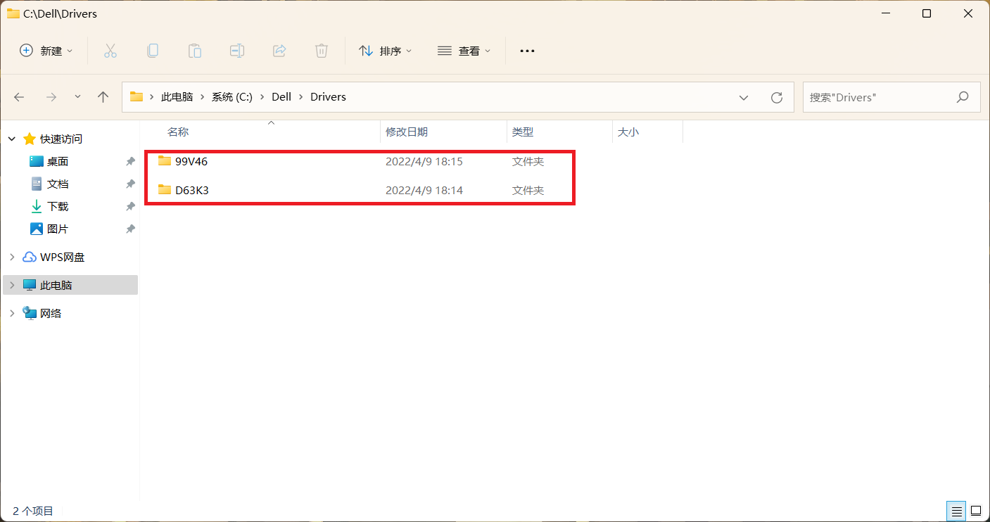 两个都解压完成后打开C:\Dell\Drivers文件夹,可以看到以下的文件