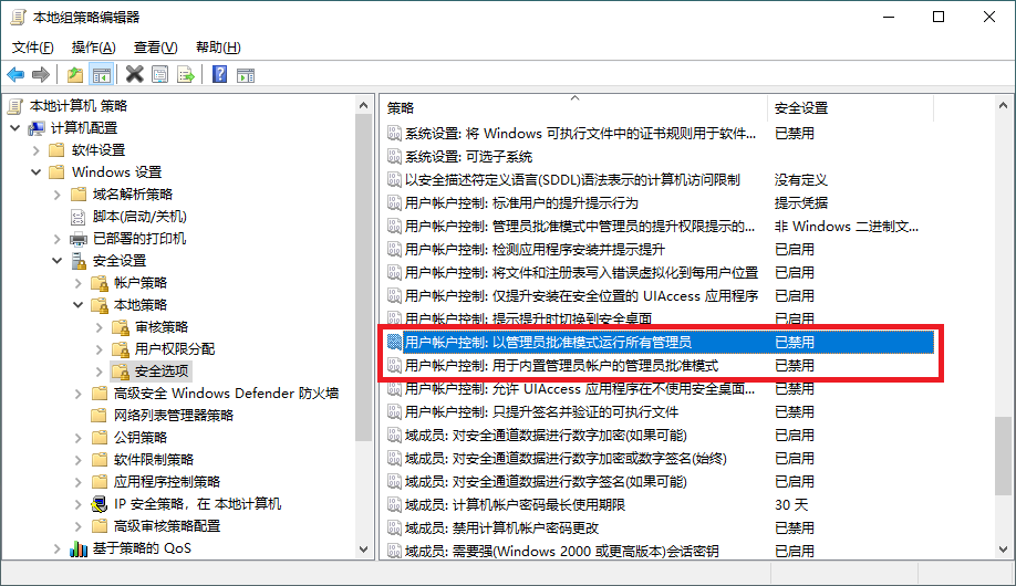 计算机配置->windows设置->安全设置->本地策略->安全选项