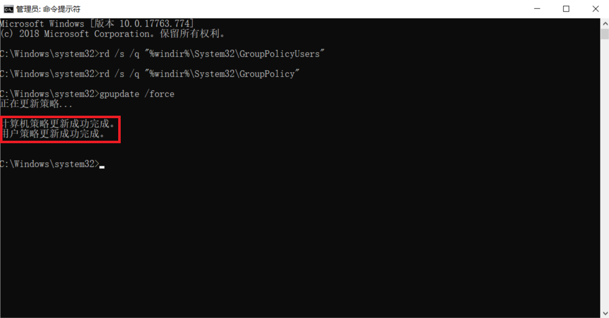 这两个执行之后,使用如下强制更新命令让上述重置操作生效(执行成功后会有提示):