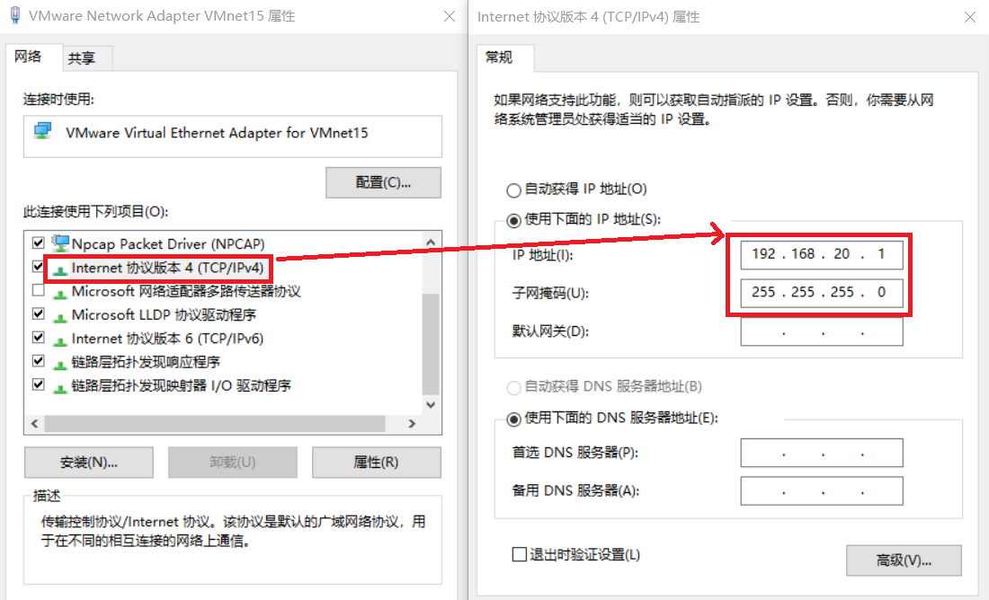 双击IPv4,可以看到虚拟网络为主机配置的IP地址