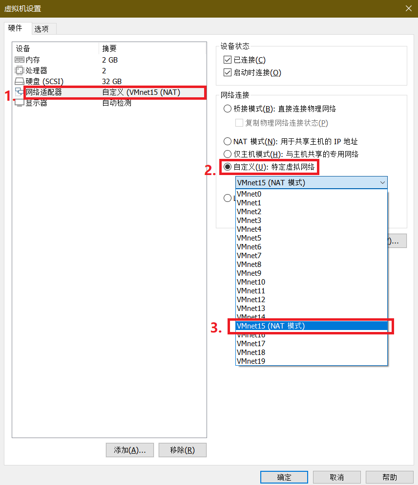 注意:在虚拟机关机状态下设置,我这里只是演示