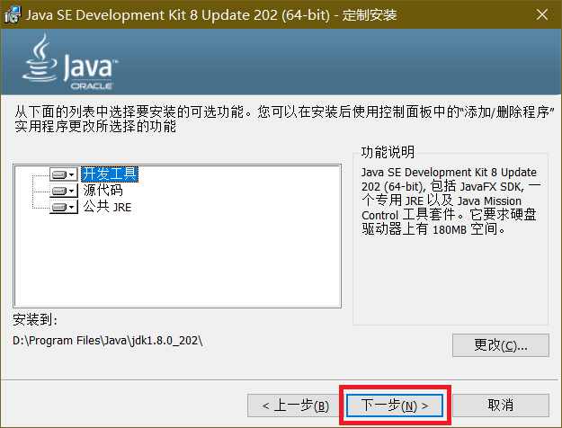 将安装路径修改到D:\Program Files\Java\jdk1.8.0_202\