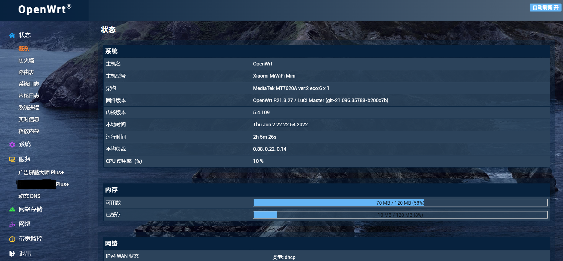 4.重启后根据电脑的默认网关信息进入Openwrt后台管理页面
