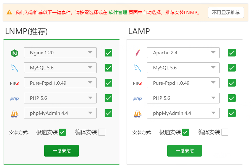 点击左边的一键安装