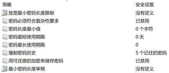 计算机配置->Windows设置->安全设置->账户策略->密码策略