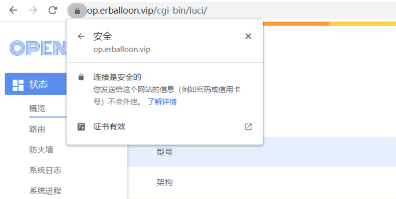 6.如图所示访问openwrt时浏览器显示安全的连接