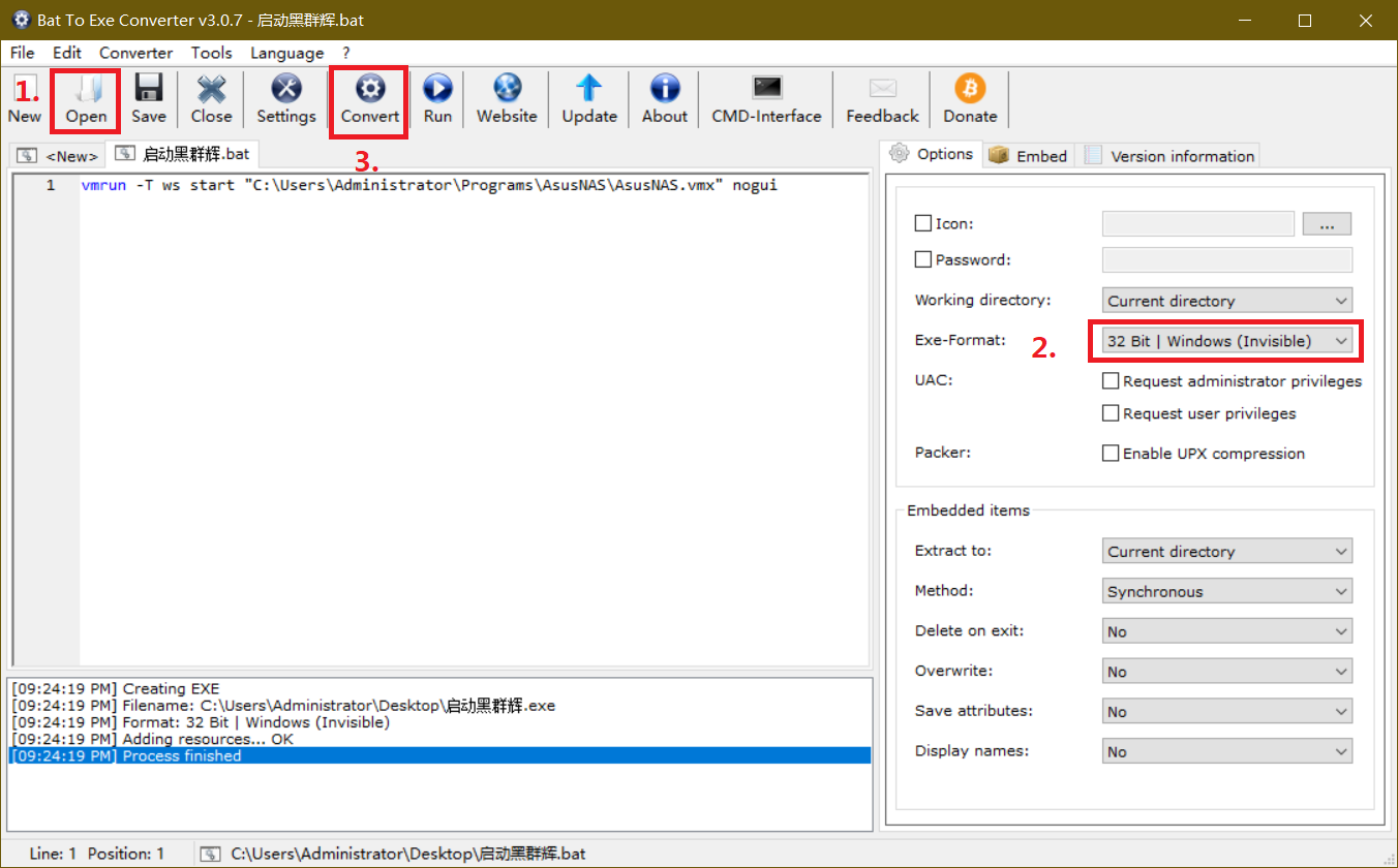 vmrun -T ws start "C:\Users\Administrator\Programs\AsusNAS\AsusNAS.vmx" nogui