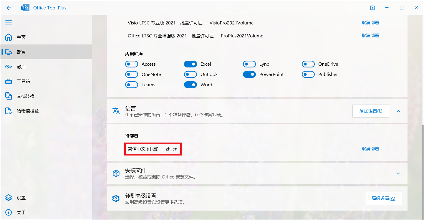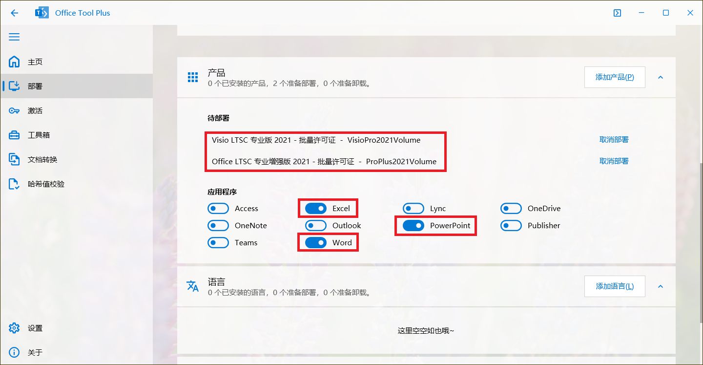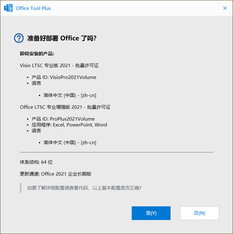 产品根据需要选择,一般至少选择Office 2021 LTSC和Visio 2021 LTSC