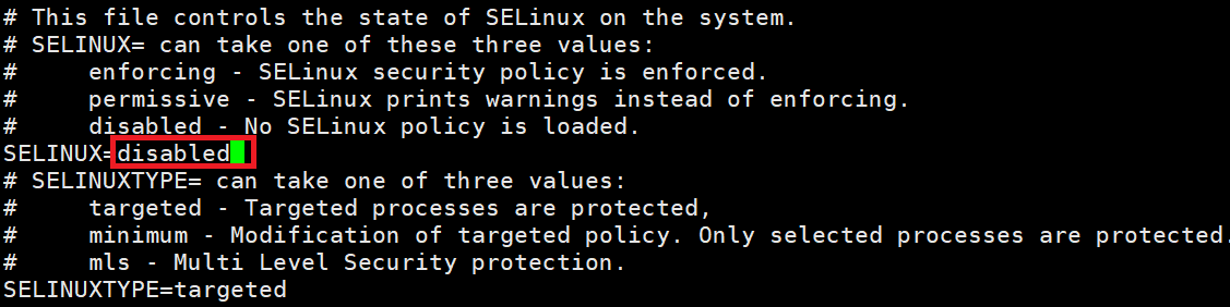 永久关闭selinux,修改/etc/selinux/config 文件,将selinux修改成disabled
