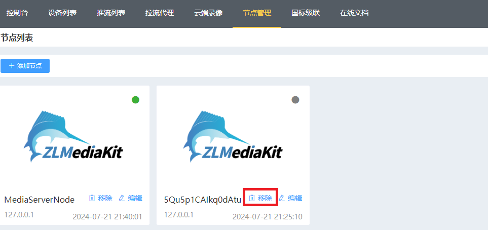 用户名和密码都为admin ,如果修改过节点名称,则在节点管理里面会多出一个离线的节点,直接删除就好