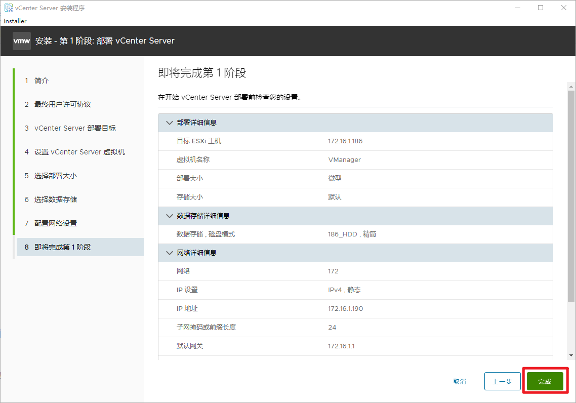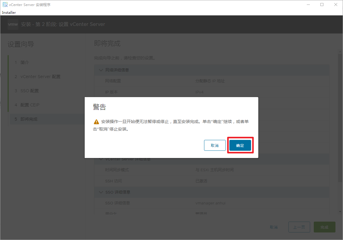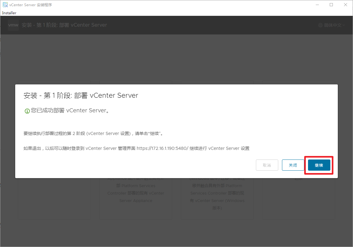 第一阶段部署完毕后,点击继续开始第二阶段部署