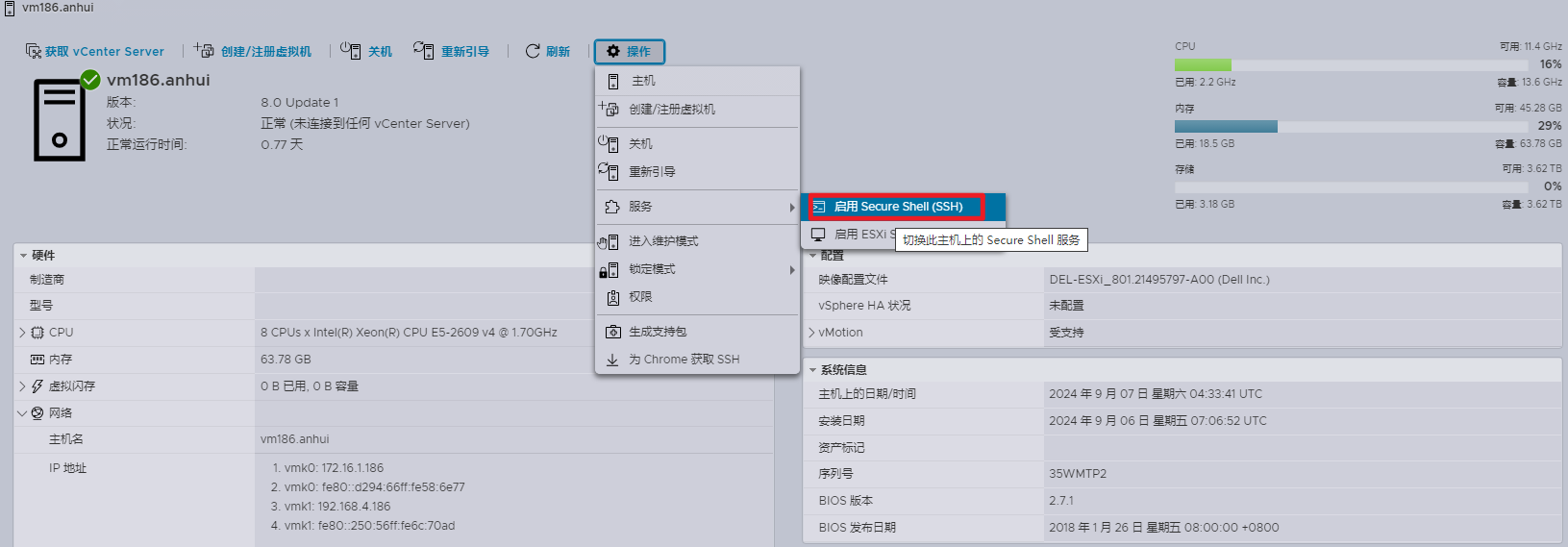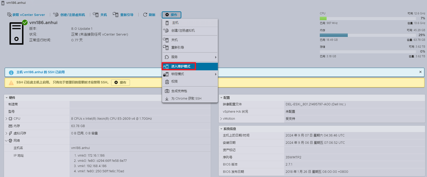 将ESXi进入到维护模式(注意进入之前需要关闭所有虚拟机)