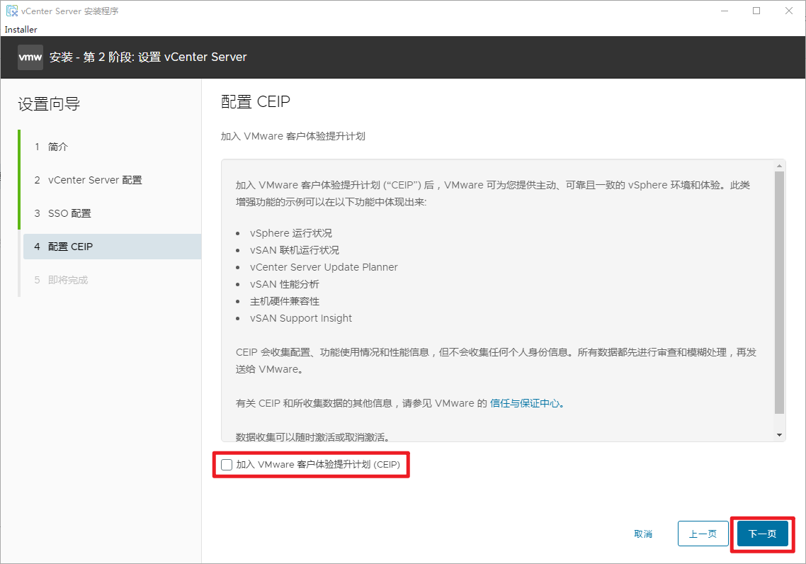 这一步不加入用户体验计划,取消勾选,点击下一步