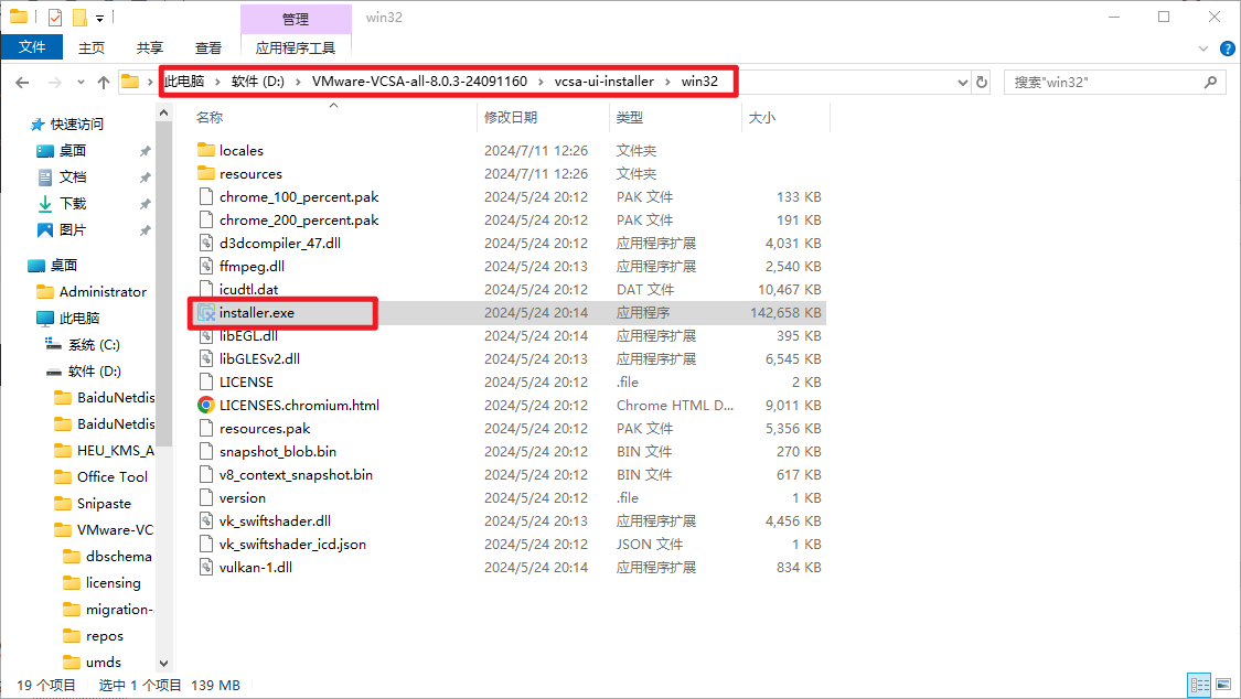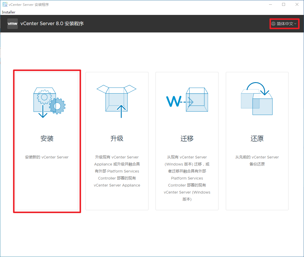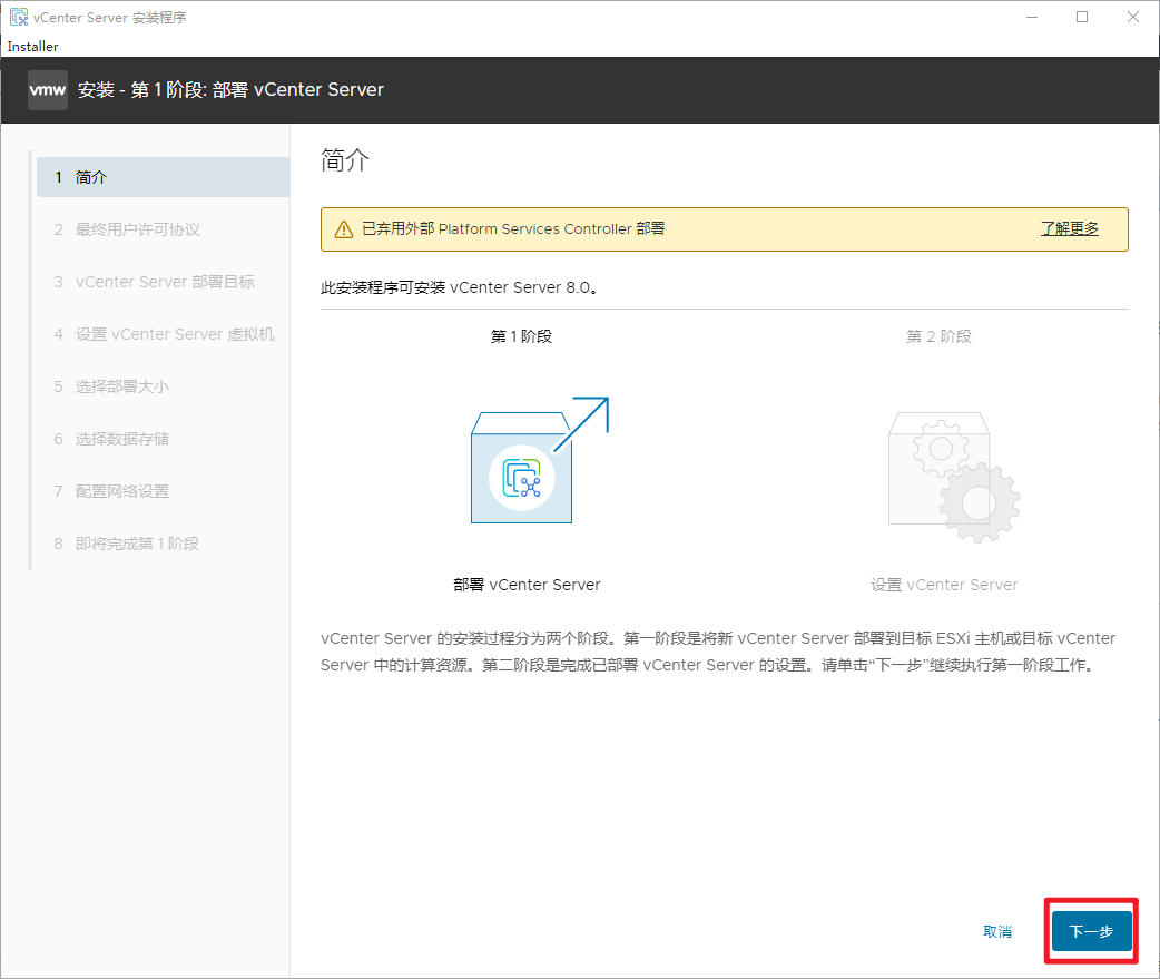 解压之后进入vcsa-ui-installer\win32,双击installer.exe