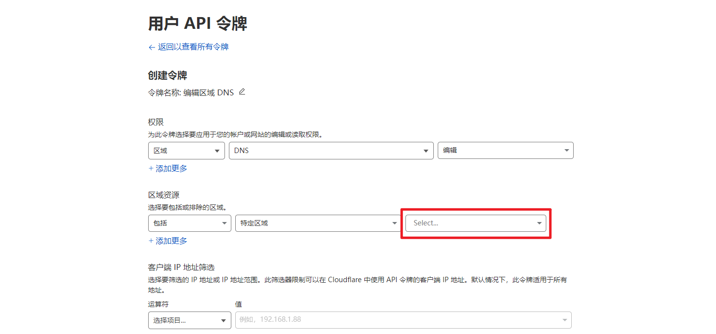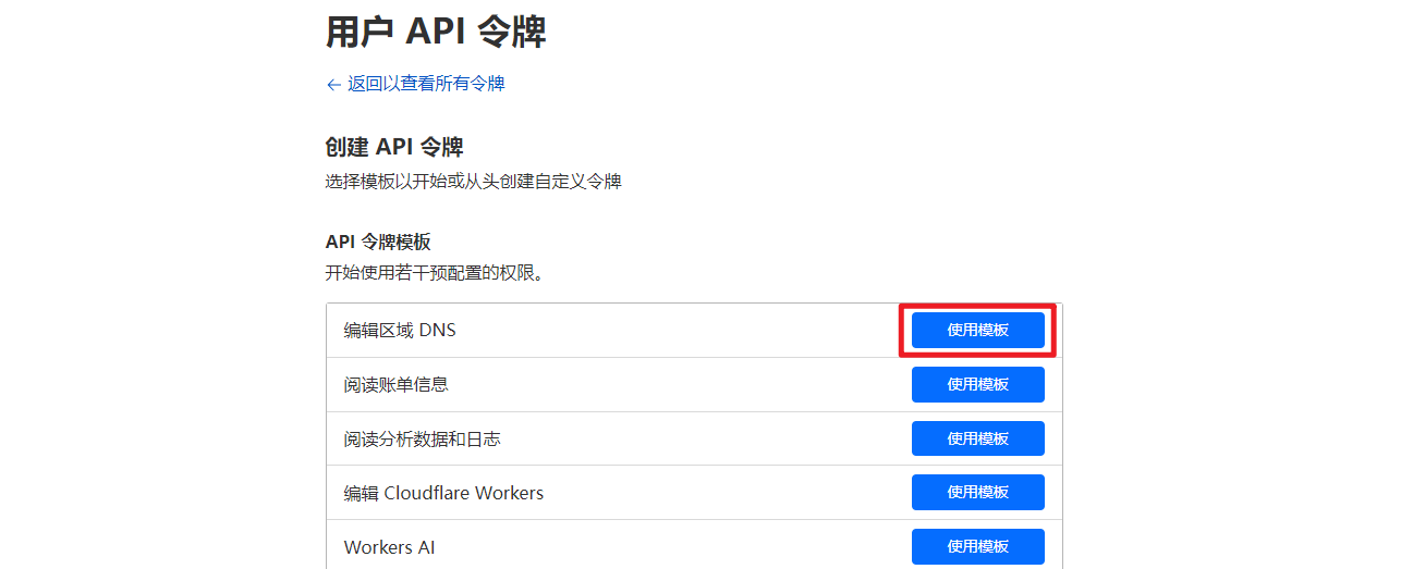 选择令牌模板为编辑区域DNS