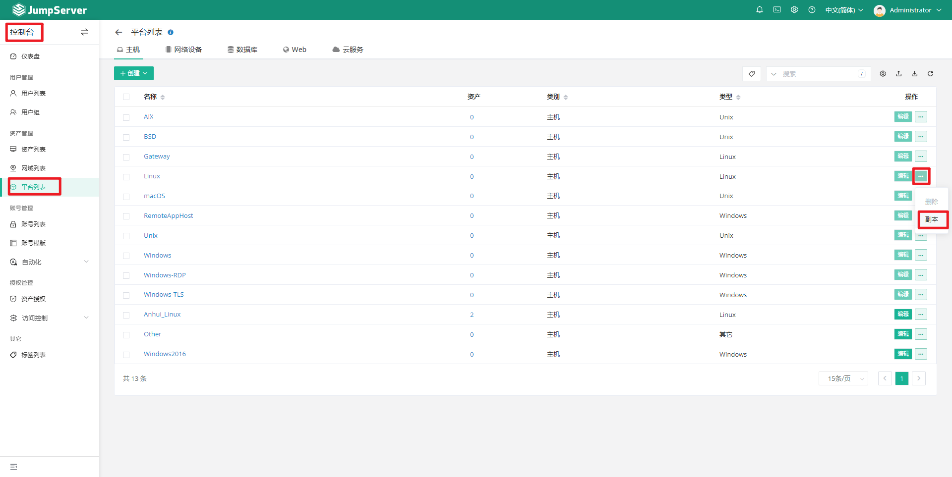 依次点击控制台 -> 平台列表 -> Linux后面的更多选项 -> 副本