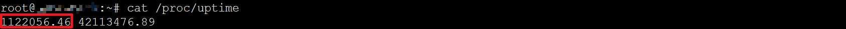 输出的第一个参数表示系统从开机到现在所经历的秒数,换算成天数是1122056/24/3600=13天