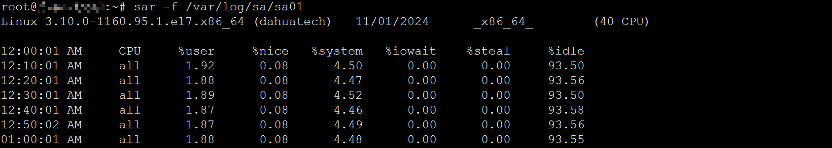 默认情况下,sar从最近的0点0分开始显示数据;如果想继续查看一天前的报告;可以查看保存在/var/log/sa下的sa日志; 使用sar工具查看: