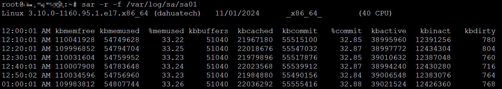 3、%memused:物理内存使用率,这个值是kbmemused和内存总量(不包括swap)的一个百分比;