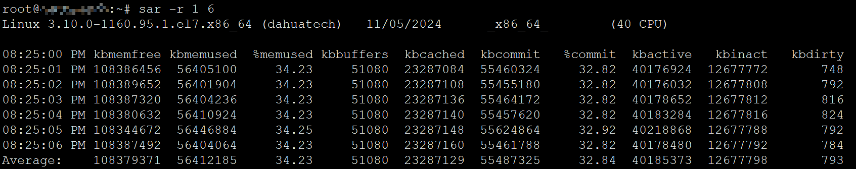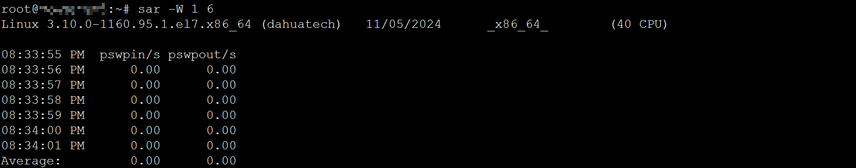 页面发生交换时,服务器的吞吐量会大幅下降;服务器状况不良时,如果怀疑因为内存不足而导致了页面交换的发生,可以使用这个命令来确认是否发生了大量的交换;