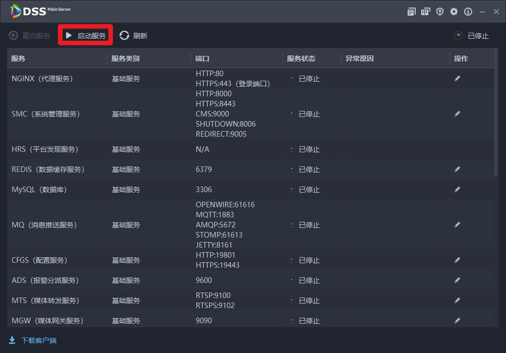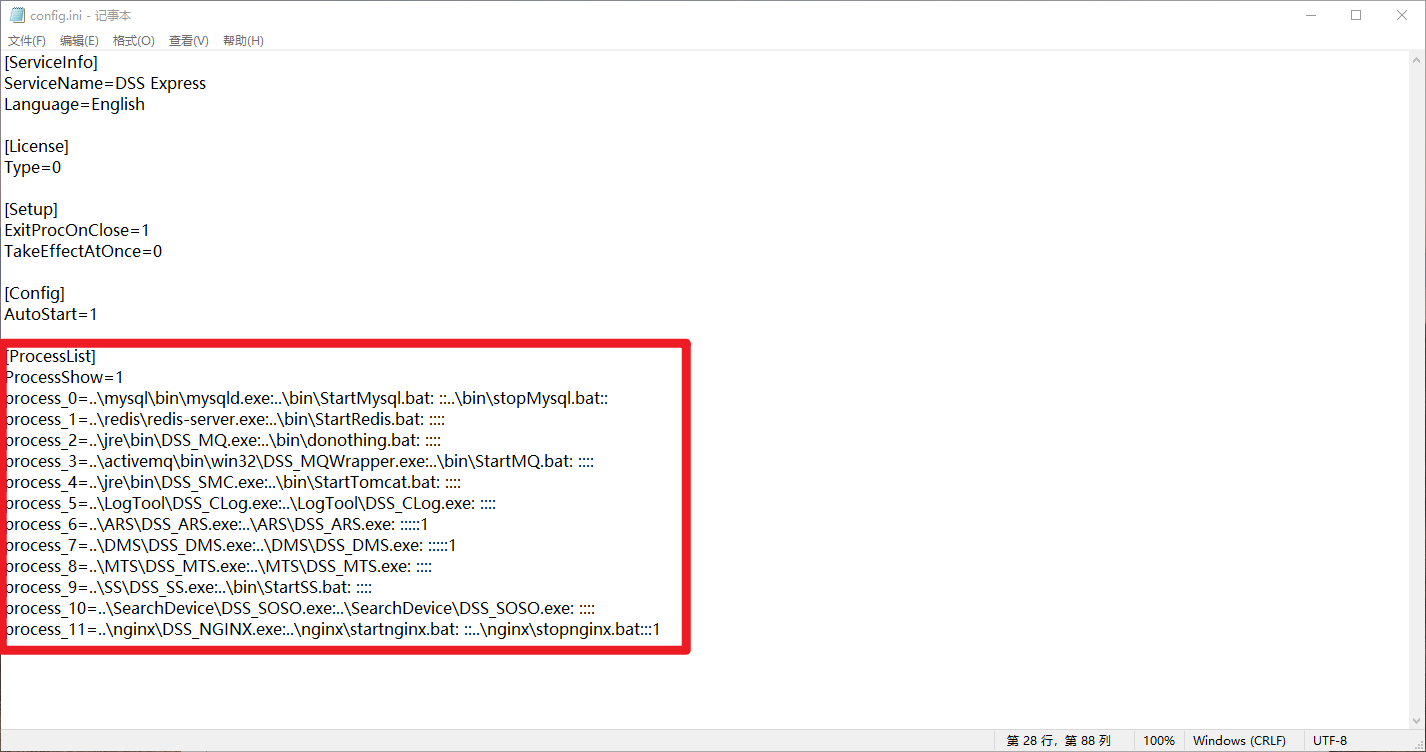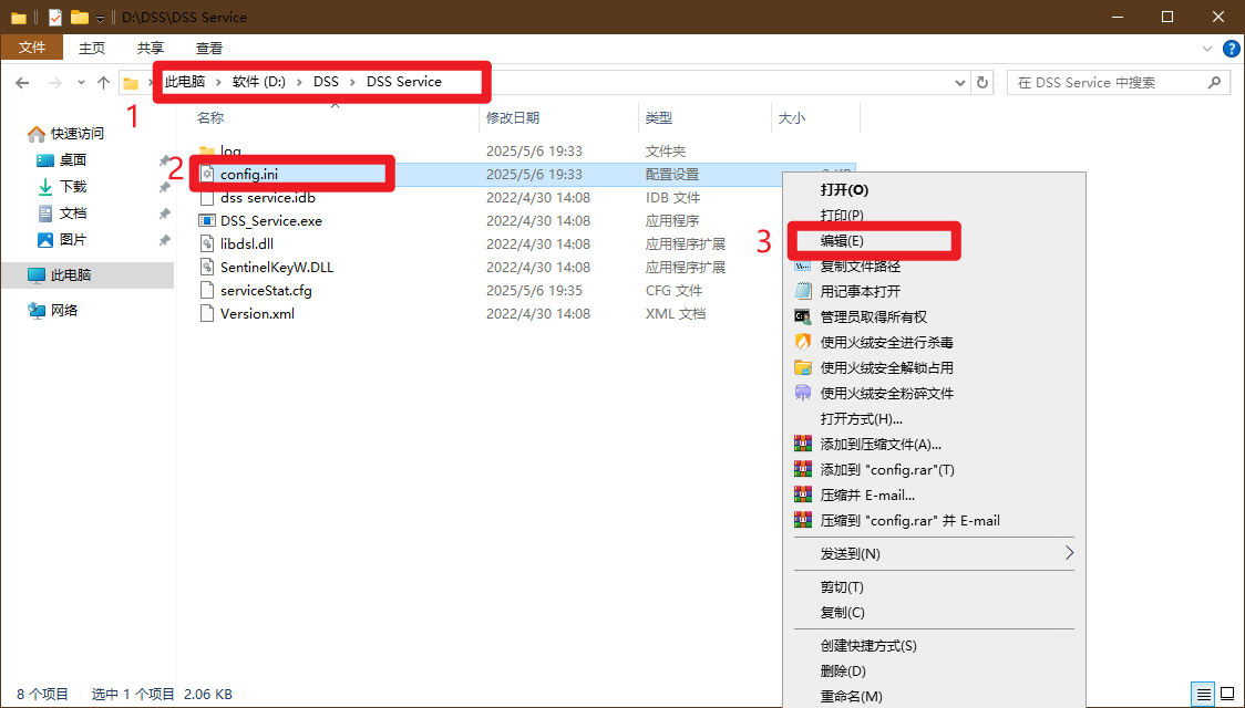 打开D:\DSS\DSS Service 目录(也可能是别的路径,安装的时候自定义的),编辑config.ini 文件