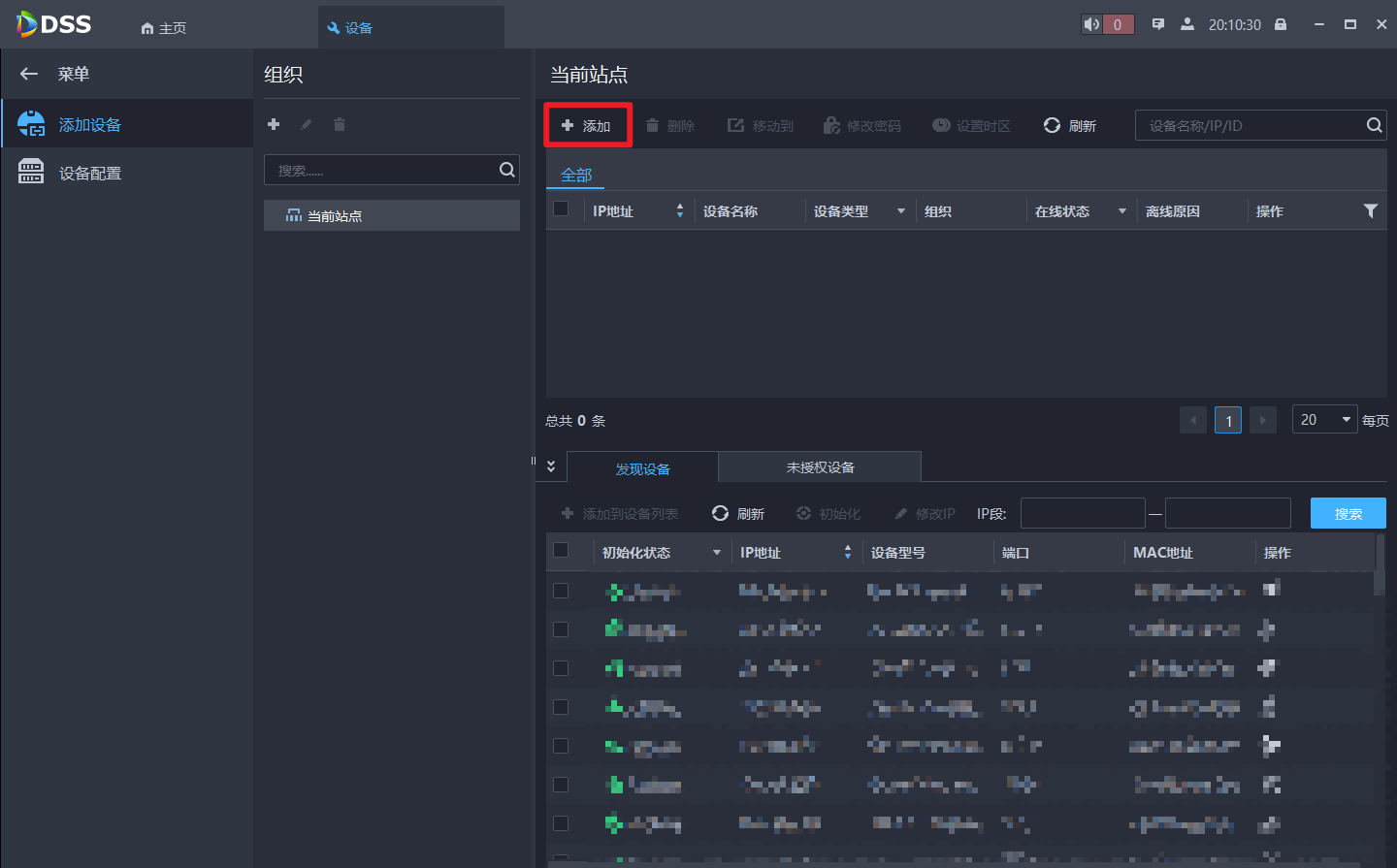 点击添加(也可以直接添加下面自动发现设备中的设备)