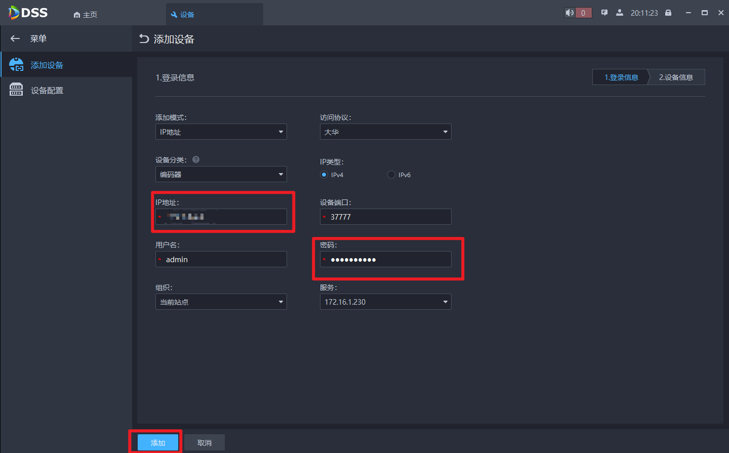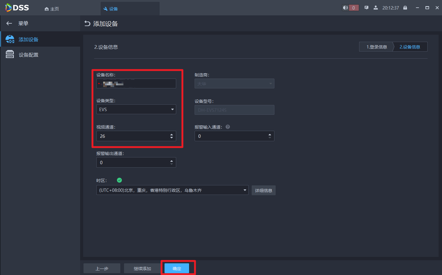 设备类型,通道数已通过SDK自动获取,输入设备名称,点确定即可完成添加设备