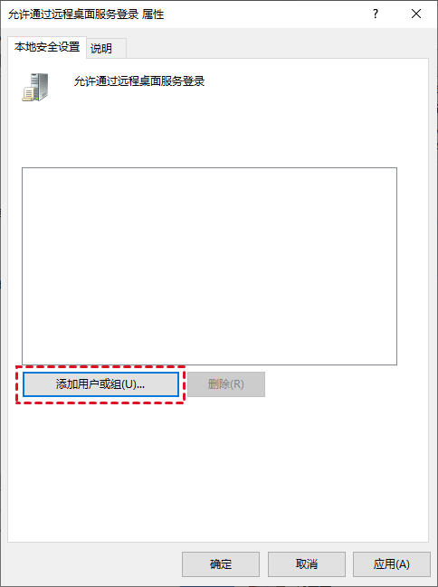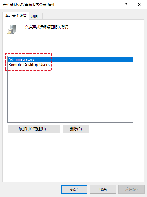 建议您删除有权作为远程桌面服务客户端登录的现有用户和组,并手动添加您要授予远程桌面访问权限的用户,这样可以让您能更好地控制哪些帐户可以使用远程桌面。