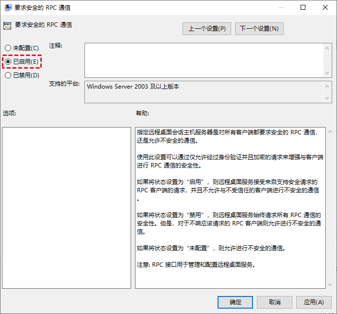 步骤4. 再在安全窗口中双击打开“要求安全的RPC通信”和“要求使用网络级别的身份验证对远程连接的用户进行身份验证”,分别将它们其状态更改为“已启用”。