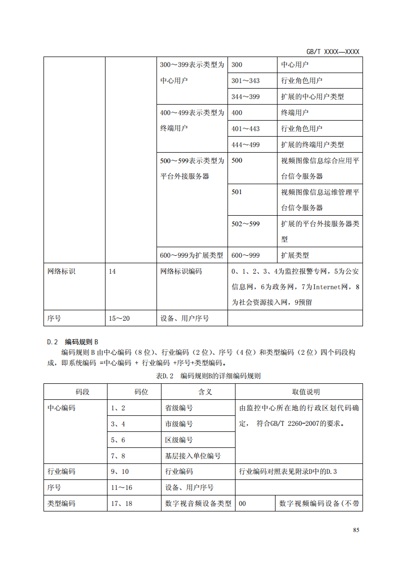 GB28181编码规则由中心编码(8 位) 、 行业编码(2 位) 、 类型编码(3 位) 和序号(7 位) 四个码段共 20 位十进制数字字符构成, 即系统编码 = 中心编码 + 行业编……