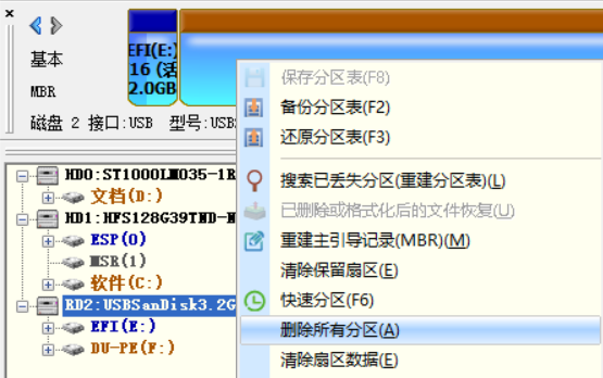 先删除U盘的所有分区