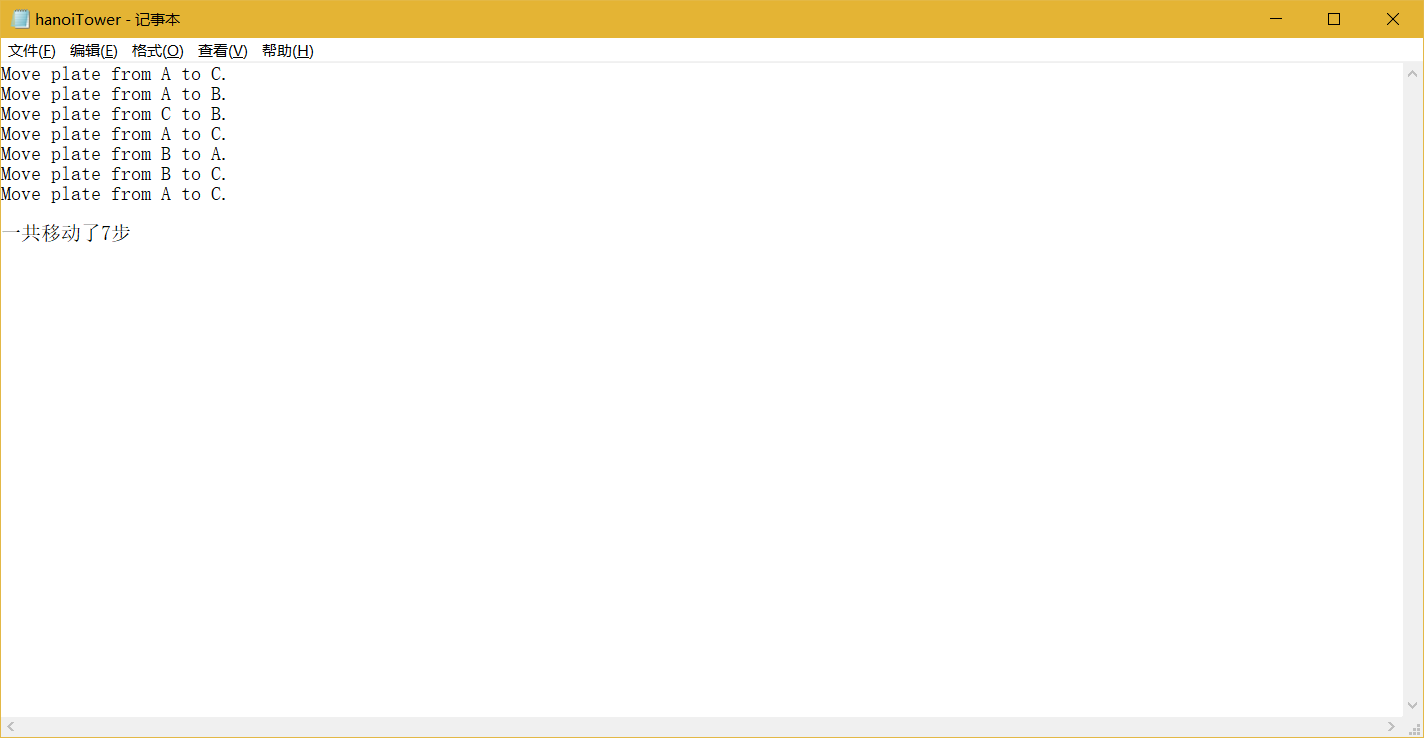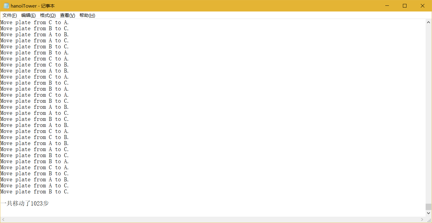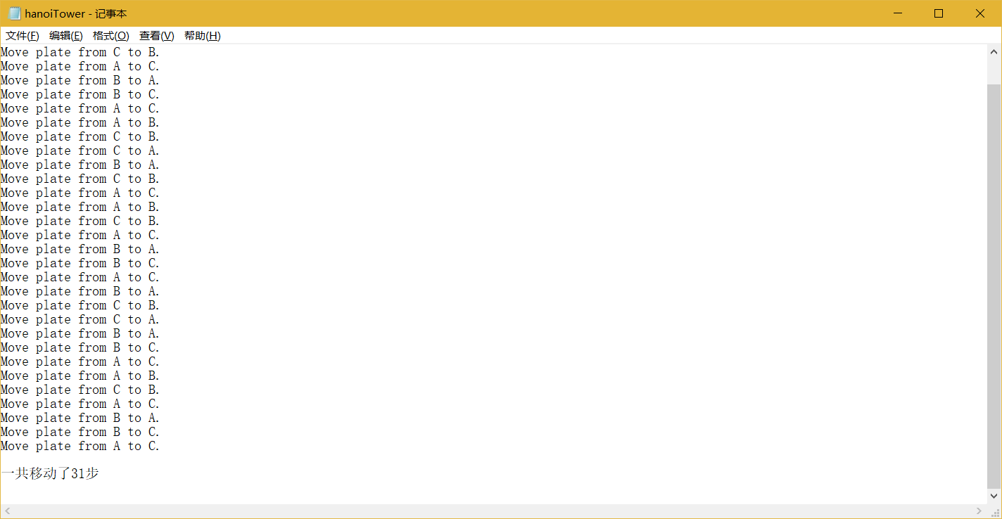 可知当盘子的数量为n(n>=1)时,移动的步数2的n次方-1