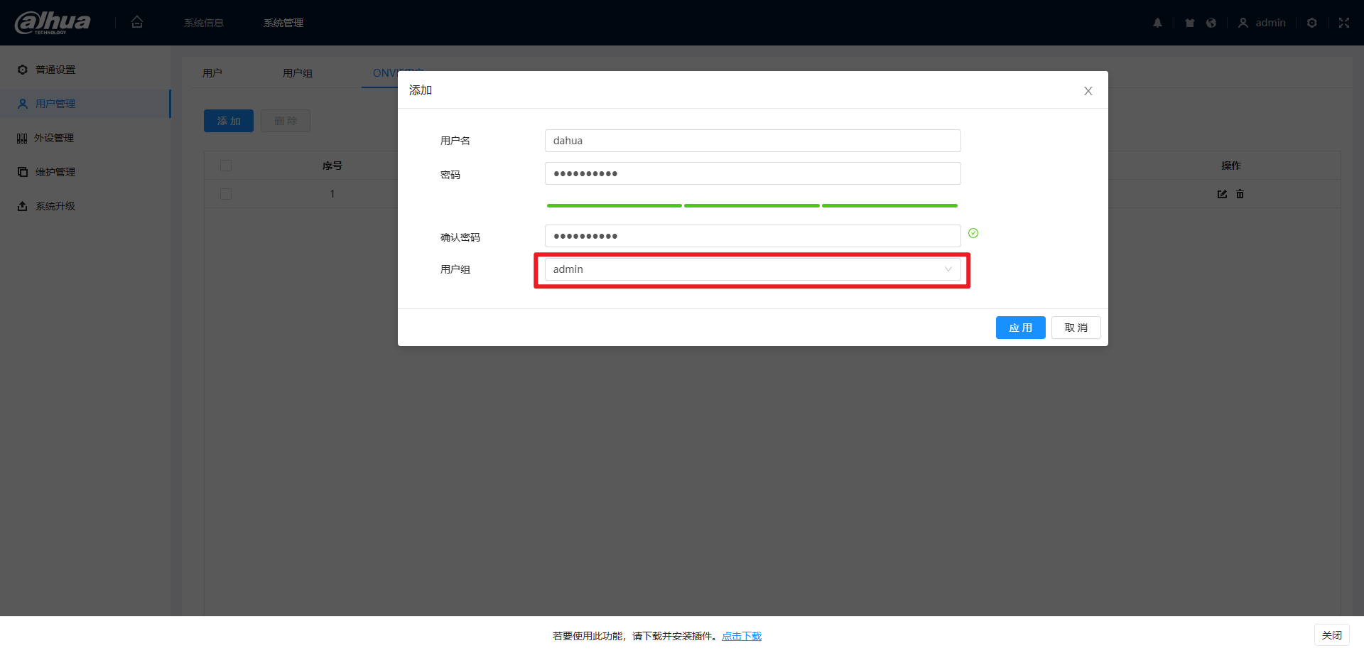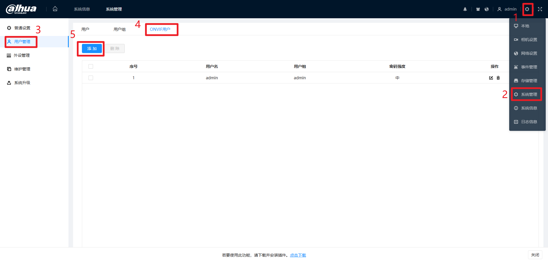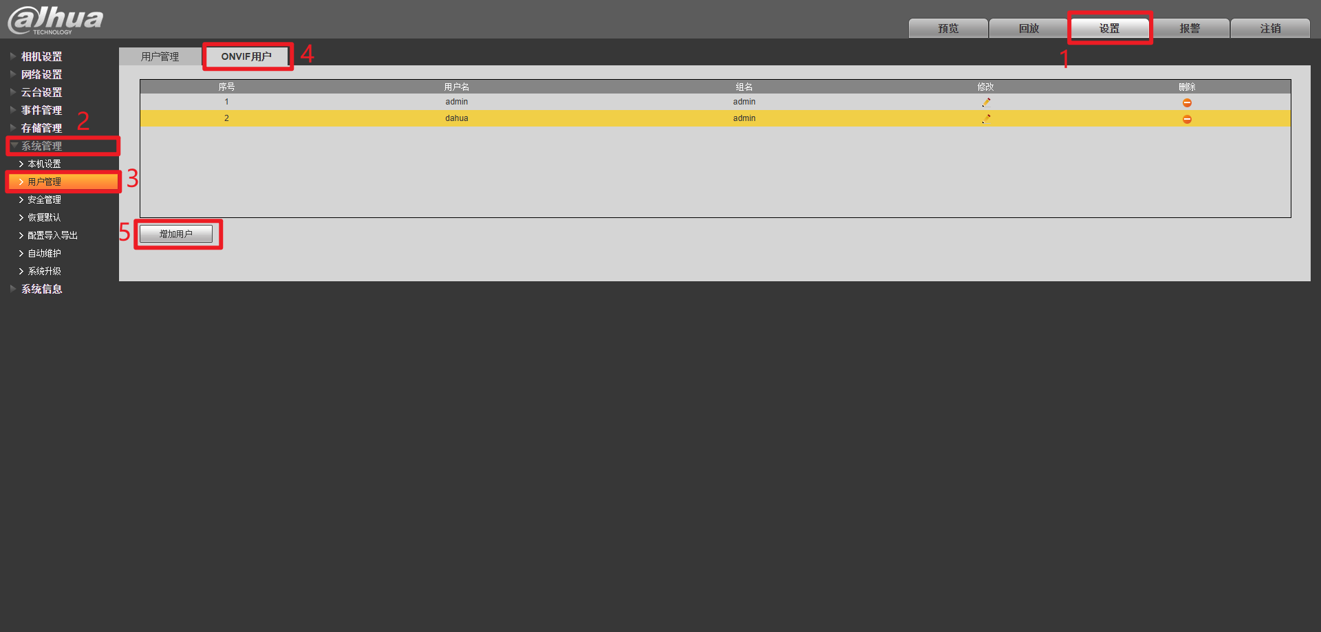 依次点击:设置->系统管理->用户管理->Onvif用户->添加